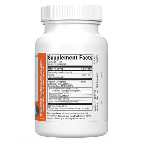The Maitake mushroom extract (Grifola frondosa) works in combination with sulforaphane to support your body’s natural detoxification process better than sulforaphane alone.1 In addition, the Maitake mushroom extract found in Avmacol® Extra Strength provides the added bonus of immune support by promoting neutrophil function and natural killer cell activity. Click here to learn more about how Avmacol® Extra Strength works.