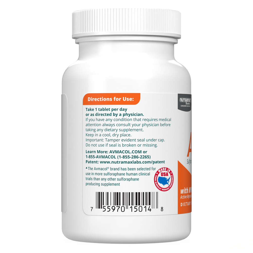 Active myrosinase enzyme is essential for the conversion of glucoraphanin (sulforaphane glucosinolate) to sulforaphane. Without this enzyme, it may not be possible to reap sulforaphane's many health-promoting benefits, which is why you’ll always find active myrosinase enzyme in the Avmacol® brand family. Click here to learn more about the importance of having an active myrosinase enzyme.